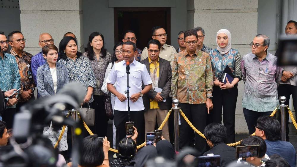 Menteri ESDM Bahlil Lahadalia (tengah) saat ditemui di Jakarta