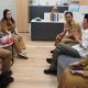 Gubernur Jatim Khofifah Indar Parawansa (tengah) bersama Anggota DPRD Jatim Komisi E, (dua dari kiri), Ketua KONI Jatim (kiri), Rektor Unesa (dua dari kanan)