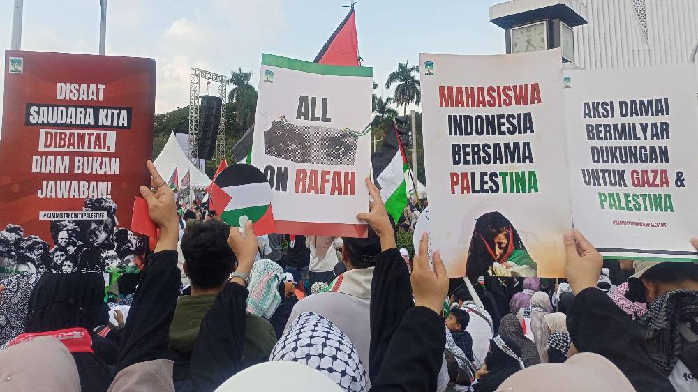 Aksi damai yang berlangsung tertib ini menjadi cerminan dukungan kuat masyarakat Indonesia terhadap perjuangan kemerdekaan Palestina. (CXO)