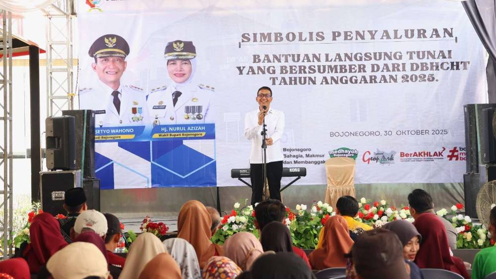 Pemkab Bojonegoro Salurkan Simbolis BLT DBHCHT 2025, untuk bantu tingkatkan kesejahteraan masyarakat. (Foto: Pemkab/Humas)